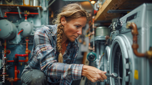 Experienced Female Plumber at Work Elderly People Demonstrates Craftsmanship Amidst Skilled Labor Shortage in Plumbing Industry Wallpaper Digital Art Poster Brainstorming Map Magazine Background Cover