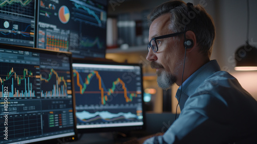 Experienced Portfolio Manager Analyzing Stock Charts and Financial Data Trends