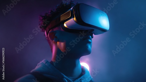 Experiencing immersive reality with VR headset Futuristic technology brings digital worlds to life Virtual exploration and digital immersion