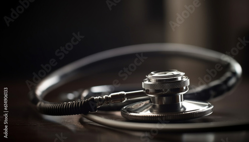 Expert cardiologist examining heartbeat with stethoscope, diagnostic medical tool generated by AI