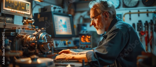 Expert engineer operating advanced machinery with sparks flying during metalwork.