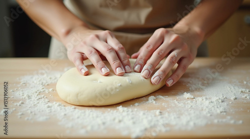 Expert Hands Skillfully Kneading Soft Dough for Freshly Baked Homemade Bread