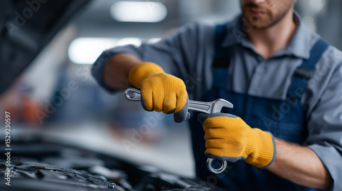 Expert Mechanic Working on Car Engine with Diagnostic Tools