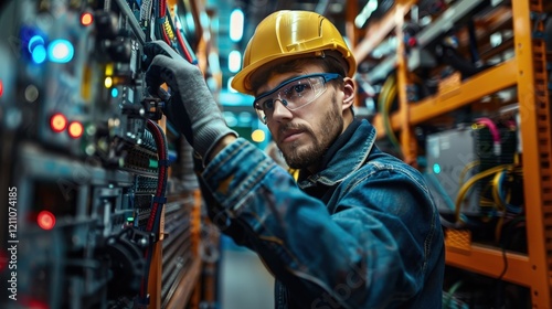 Expert Technician Engaged in IoT Infrastructure Maintenance and Management in a Modern Setting