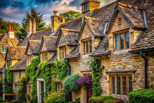 Explore charming Cotswold cottages; detailed window & roof tile photography.