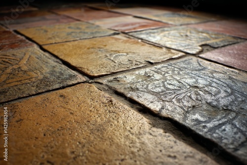 Explore Intricate Designs: Ancient Tilework's Geometric Patterns and Hues Showcased Closely