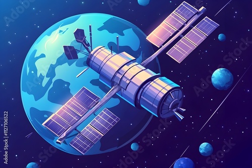 Explore the wonders of space with a detailed illustration of a rocket and celestial bodies, perfect for science and education. illustration, science, design, mosque, travel, child, star, sky,