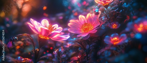 Exploring a futuristic garden of glowing holographic flowers in a surreal environment a visual journey into nature's digital evolution