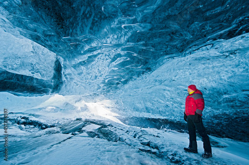 exploring an Icecave under Vatnajokull - Europe's biggest glacier