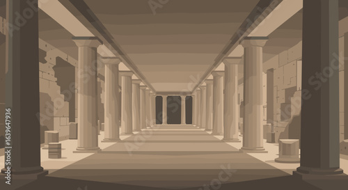 Exploring ancient architecture historical ruins digital art minimalist environment interior perspective timeless elegance. Vector illustration