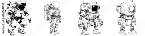 Exploring diverse astronaut designs in a hand-drawn vector illustration style