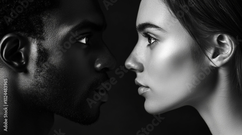 "Exploring Duality: A Striking Black and White Portrait of Contrasting Faces Capturing Unity and Diversity in Human Experience"