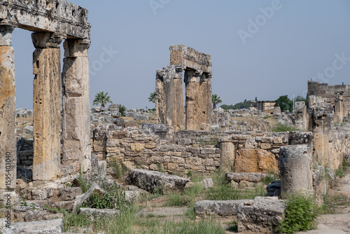 Exploring the Ancient Ruins of Pamukkale Showcasing Stunning Columns and Stone Structures Under a Clear Blue Sky