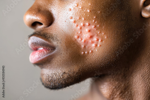 Exploring the Impact of Skin Conditions: A Close-Up View of a Person's Facial Rash Capturing Both Vulnerability and Reality