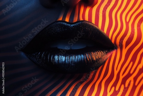 Exploring the intersection of beauty and artistry a close-up on striking lip art against bold patterns