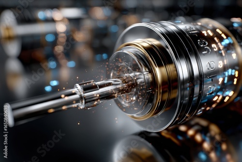 Exploring the intricate design of a futuristic mechanical device near twinkling lights
