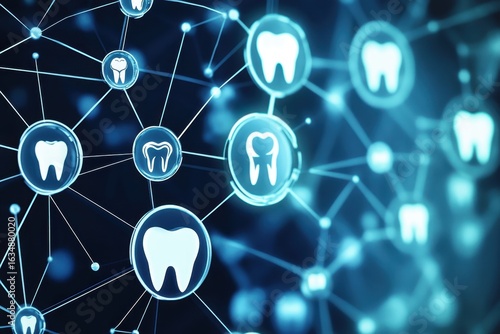 Exploring the network of dental connections and icons representing diverse dental health concepts, network of connections with icons over diverse doctors talking