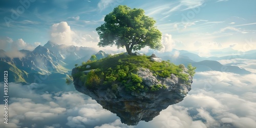 Exploring the Surreal Imagery of a Dreamlike Floating Island. Concept Surreal Imagery, Dreamlike Floating Island, Exploration, Photography, Art