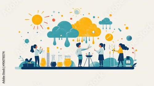 Exploring Weather Science with Minimalist Creativity - Flat Illustration of Learners Conducting Experiments with Scientific Kits