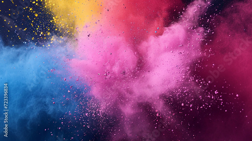 Explosion of colored powder, isolated on black background. Abstract colored background