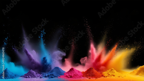 Explosion of colored powder on black background, color powder, powder explosion, colored dust, vibrant colors, powder burst, colorful explosion