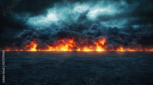 Explosions Engulfing Battlefield with Smoke and Fire in Dramatic Atmosphere