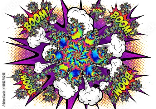 Explosive Burst Fractal Art with Comic Book Style, Vibrant Colors