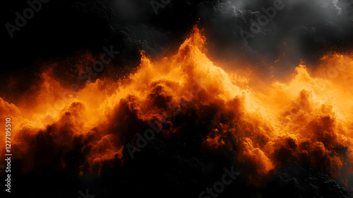 Explosive Burst of Orange Powder Against Dark Backdrop for Dramatic Effect