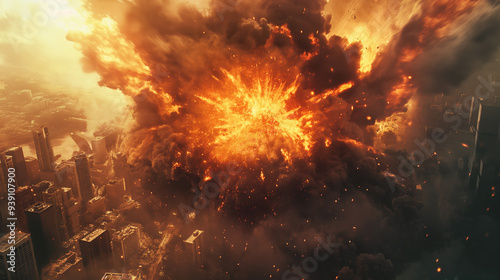 Explosive disaster devastating a city. AI renerated.