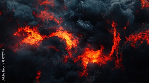 Explosive lava and fire Halloween background, featuring red-orange flames and billowing black smoke, ideal for a dramatic banner.