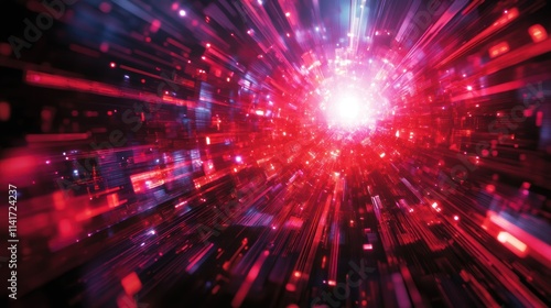 Explosive Ruby Sunburst Charts Over Night Skyline Digital Art Urban Environment Aerial View Creative Visualization
