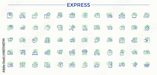 Express colorful line icon set. Featuring speedometer, performance, fast, boost, rapid, accelerate. Thin outline icons pack. Fast icon. Pixel perfect. Editable vector.