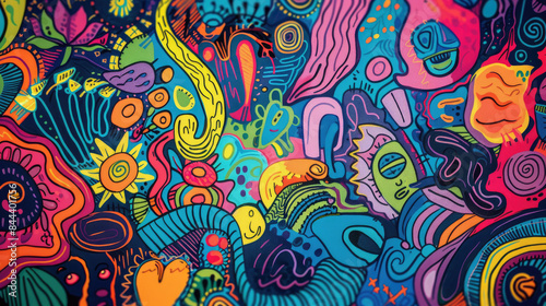 Expressive and Colorful Doodle Art Mural Pattern