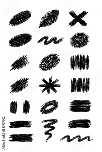 Expressive black brush stroke texture collection in dry paint style, Transparent Background