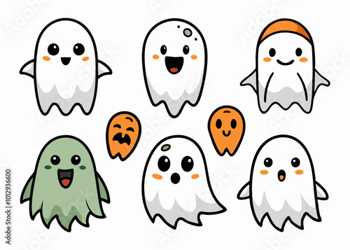 Expressive Cartoon Ghosts' Set of Cartoon Ghosts' Doodle Ghouls Collection' Vibrant Cartoon Ghosts Set' Fun Cartoon Ghosts Doodles, Doodle Ghouls with Emoticons & Fun Faces!"