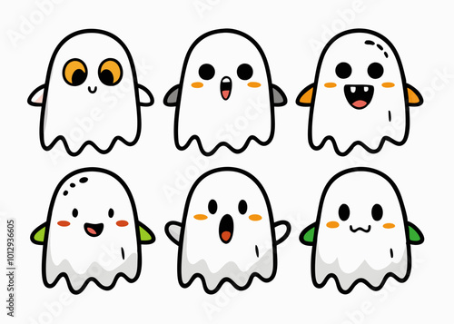 Expressive Cartoon Ghosts' Set of Cartoon Ghosts' Doodle Ghouls Collection' Vibrant Cartoon Ghosts Set' Fun Cartoon Ghosts Doodles, Doodle Ghouls with Emoticons & Fun Faces!"