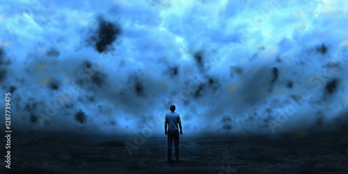 Expressive digital painting of a person standing in a foggy landscape, blurry figures around them representing unclear thoughts and confusion