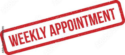 Expressive red rubber stamp with a speckled effect displaying the phrase WEEKLY APPOINTMENT for scheduling reminders