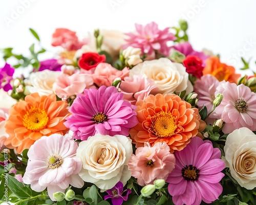 exquisite bouquet of flowers isolated on white, vibrant and fresh blooms, closeup photography, floral beauty