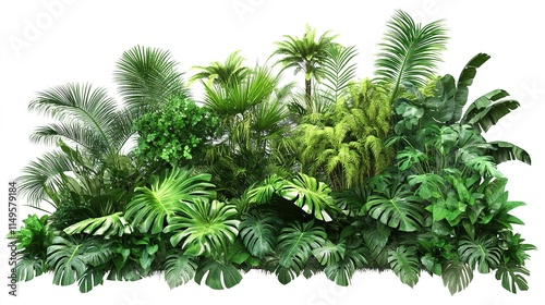Exquisite Cut-Out of Lush Green Tropical Plants Bush, Capturing the Essence of a Verdant Paradise with Vibrant Foliage.