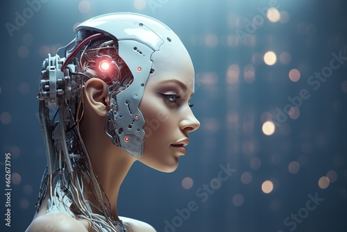 Exquisite female robot equipped with advanced artificial intelligence.