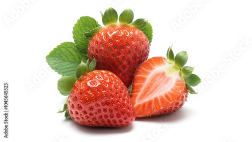 Exquisite Fresh Albion Strawberries on White Display, With Green Leaves