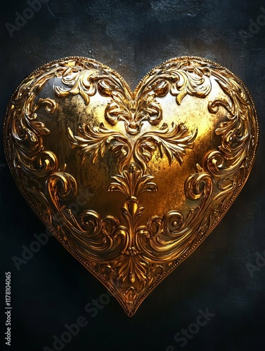 Exquisite Gold Heart with Baroque Style Ornamental Design, Symbolizing Elegance and Luxury in Cultural Heritage Artwork