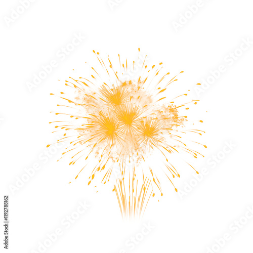 Exquisite golden fireworks explosion with sparkling metallic textures, PNG graphic