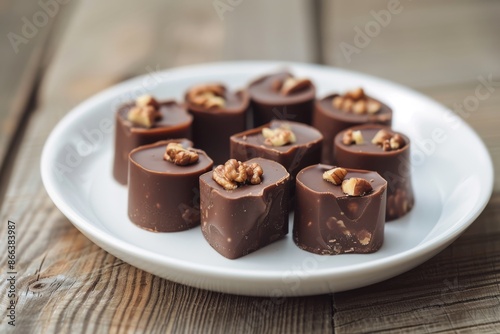 Exquisite Gourmet Chocolates: Minimalistic Presentation on Wooden Table