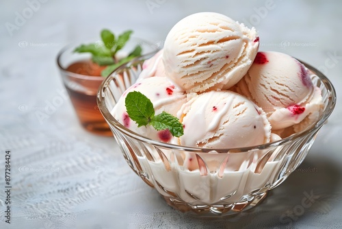Exquisite Gourmet Ice Cream Selection in Crystal Bowl with Mint Sprig