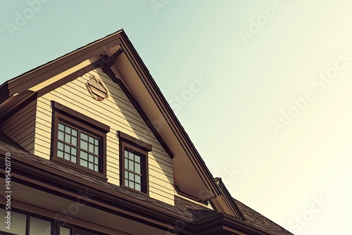 Exterior Cream House with Windows and Brown Trim under Clear Sky for Home Design