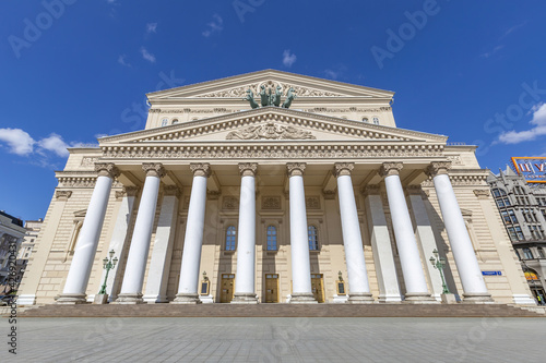 Exterior of the historic building of the Bolshoi Theater in Moscow. Founded in 1776. Symbol of Russia for all time