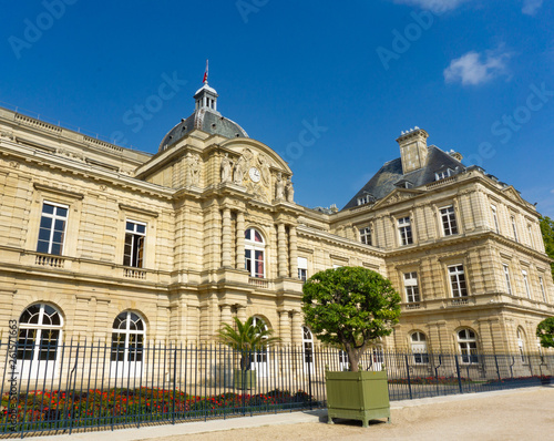 Exterior view of Luxembourg Palace in blue sky day in Paris, France