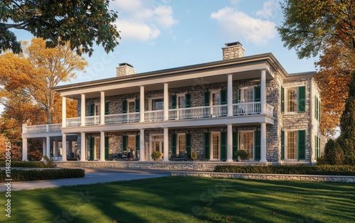 Exterior view of the newly opened Ocean House in Harrisonia, designed in American country style, featuring a stone facade